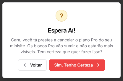 Mas atenção! O cancelamento da sua assinatura é uma ação que tornará todos os seus blocos Pro inativos e invisíveis no seu minisite.