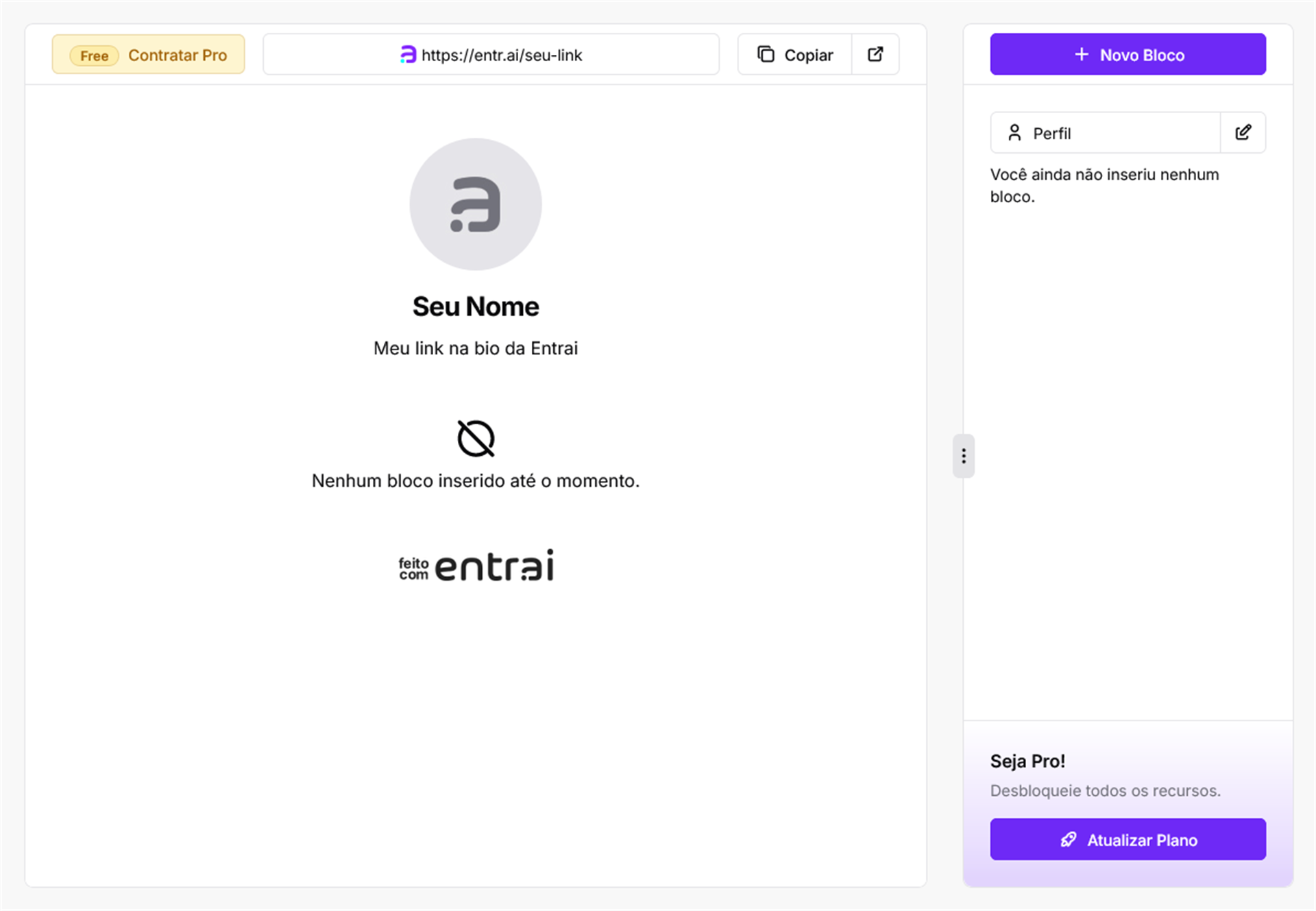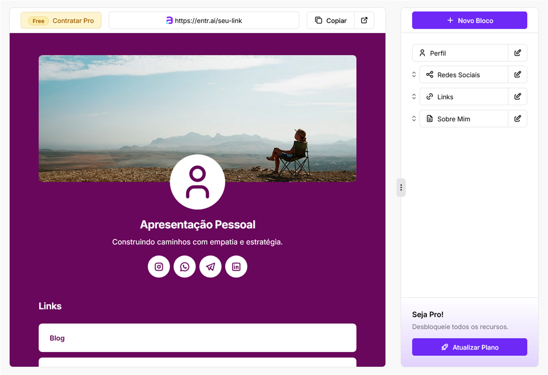 Na Entrai você pode criar quantos links quiser, então vamos realizar uma nova criação, para mostrar o caminho completo.