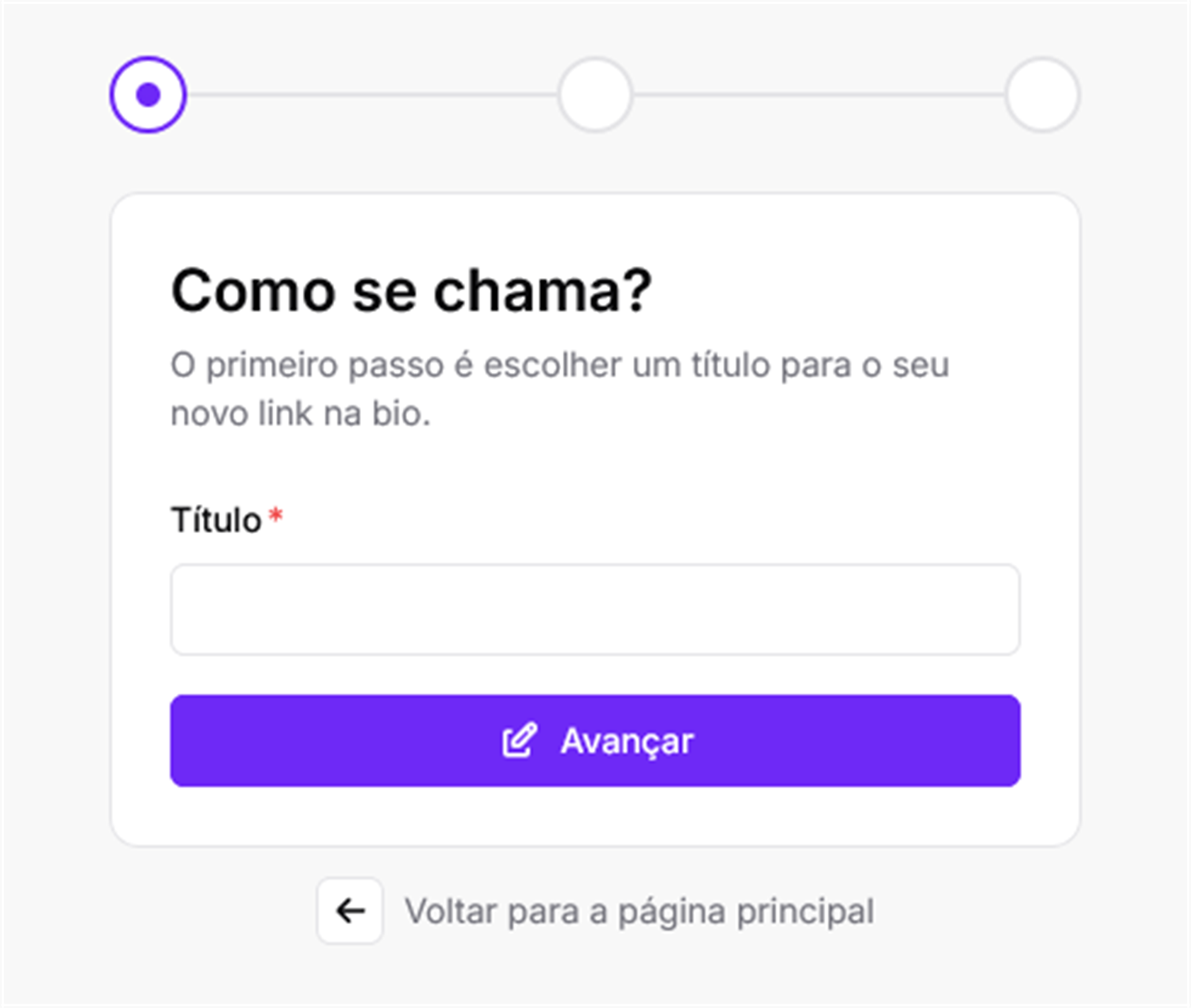 O primeiro passo é escolher um Título para seu link.