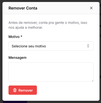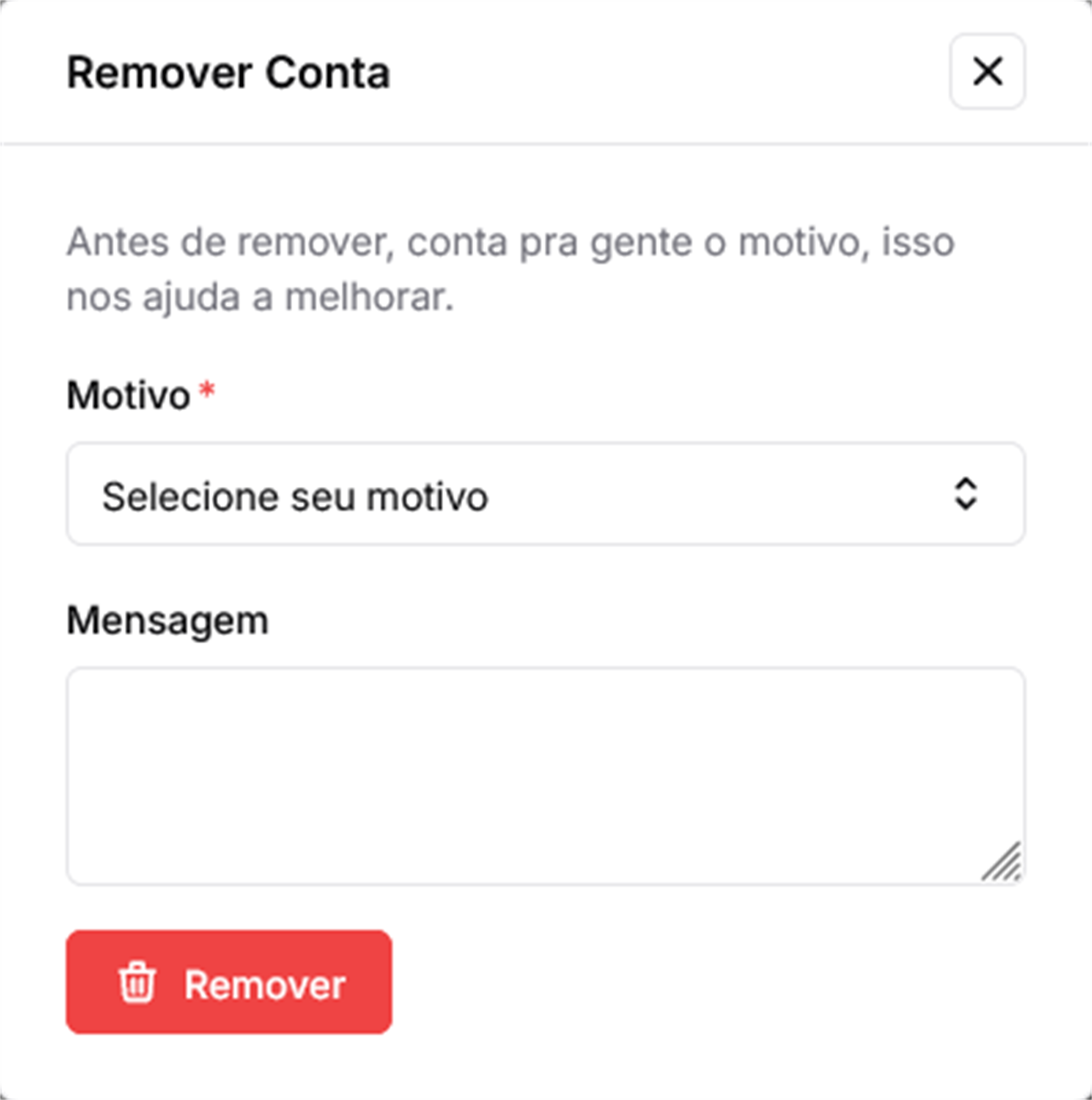 Selecione o motivo da remoção e, se desejar, compartilhe conosco um feedback.