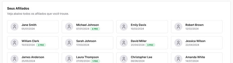 Você também poderá visualizar a lista de todos os seus afiliados.