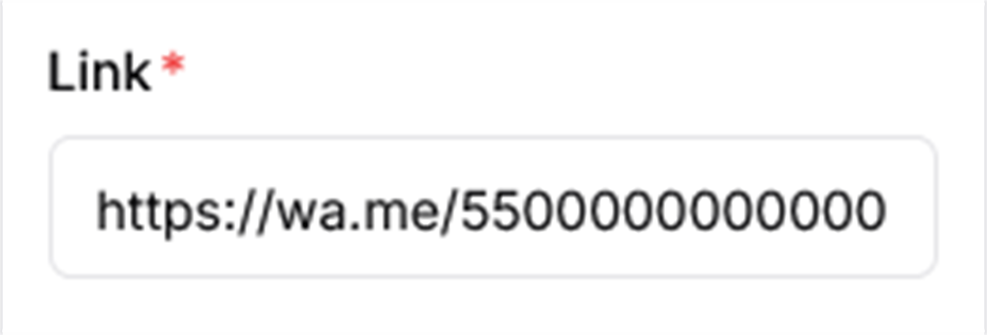 Se você inseriu um número de WhatsApp no bloco de Links, em qualquer botão de chamada para ação do seu link, saiba que ele só irá funcionar corretamente se você utilizar um link para o usuário ser direcionado para seu WhatsApp.