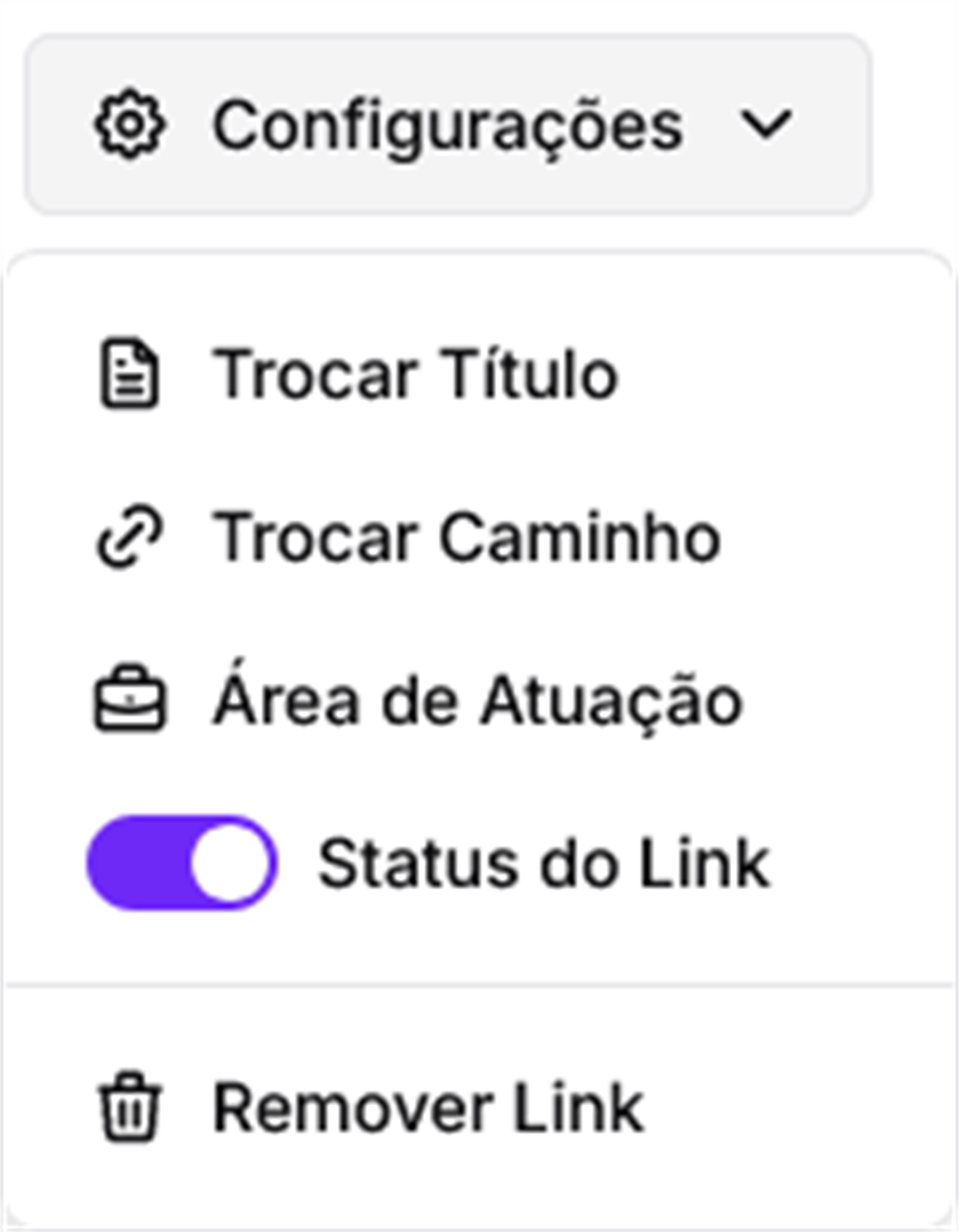 Desative o botão de status. O link será desativado automaticamente, ficando visível apenas no seu Painel do Cliente.