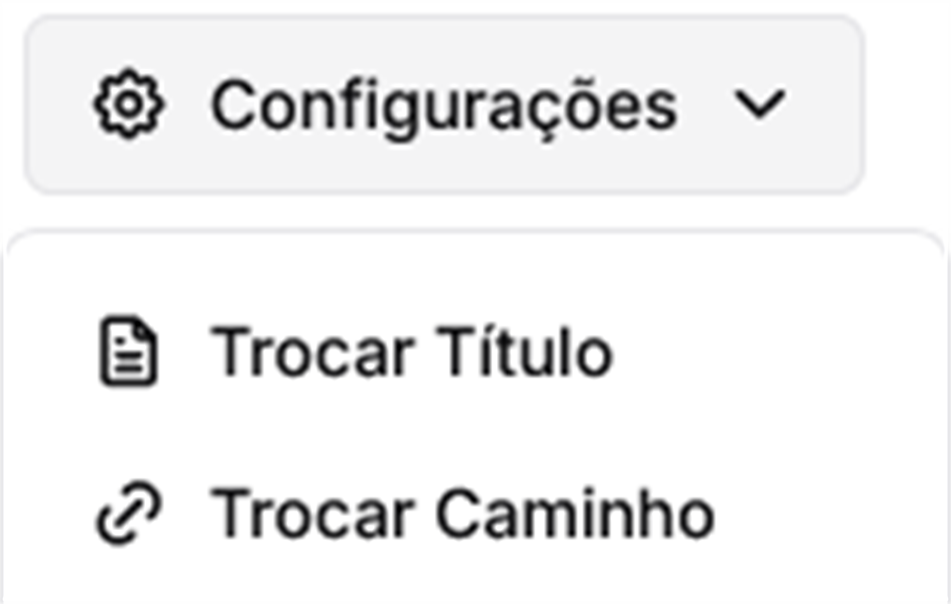 No painel de edição do template, localize no menu superior em Configurações o botão Trocar Caminho e clique nele.