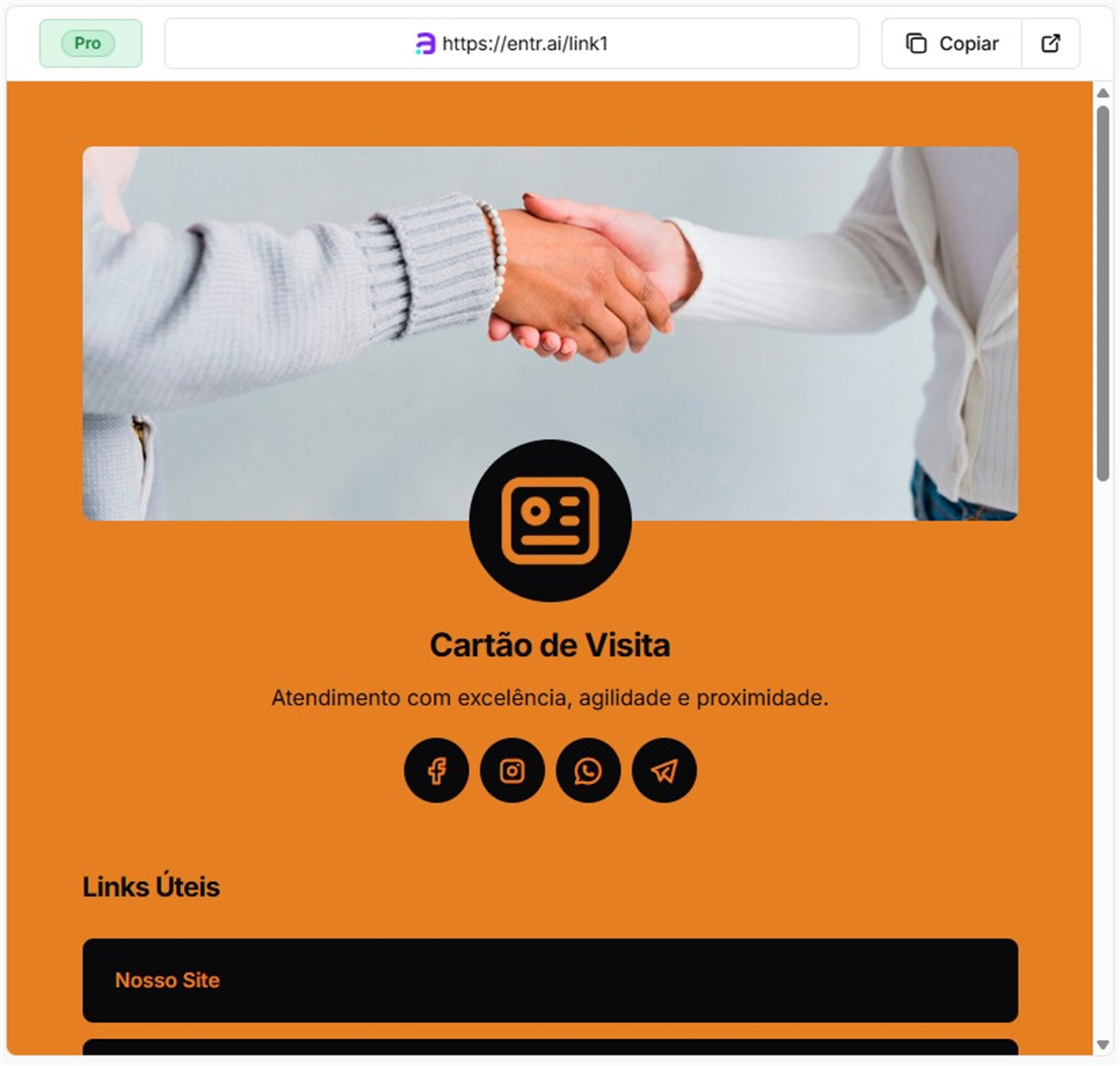 Pronto, nesse momento o template do seu link já está atualizado e você já pode editar com suas informações.