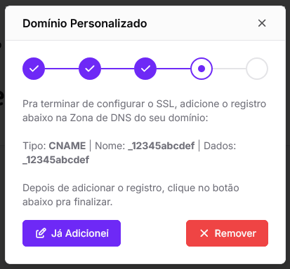 Uma janela pop-up será aberta para configurar seu Domínio Personalizado, onde poderá iniciar o processo.